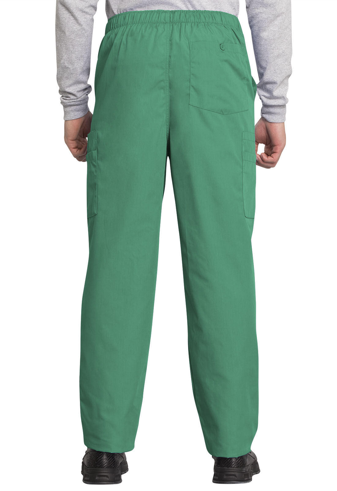 A Men's natural rise, elastic waist pant with webbed drawstring also features a functional zip fly, four side cargo pockets, two slash pockets and a back patch pocket. Inseam 31".