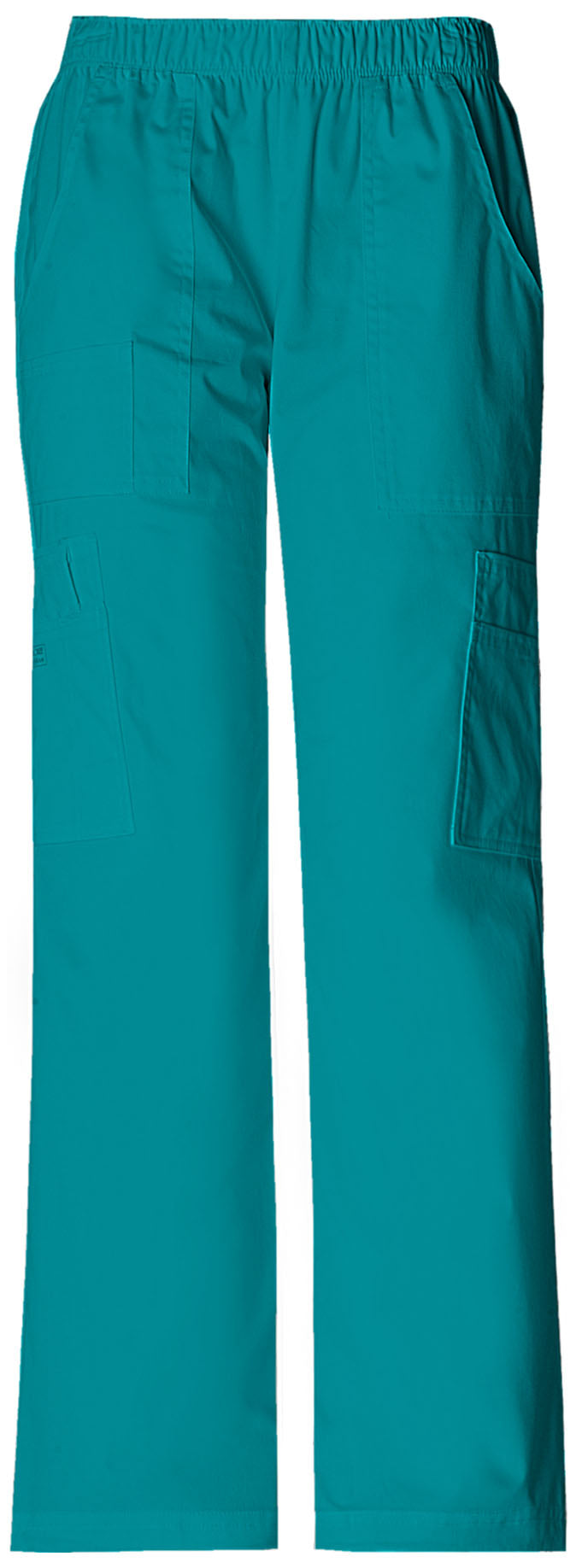 A Modern Classic fit, mid rise, straight leg pant features a soft elastic inside waistband, front patch pockets and an additional small right patch pocket. Also featured are double cargo side pockets with an instrument loop and a bungee cord with a clear toggle at the leg hems for adjustability. Inseam length: 28 1/2"
