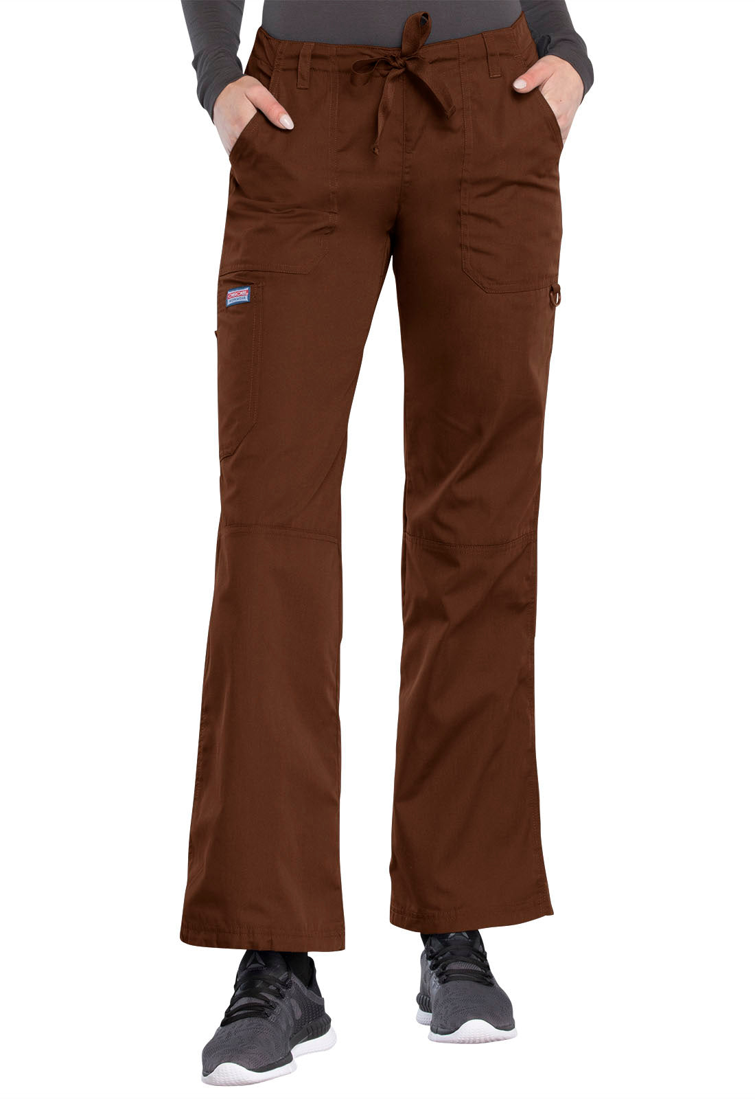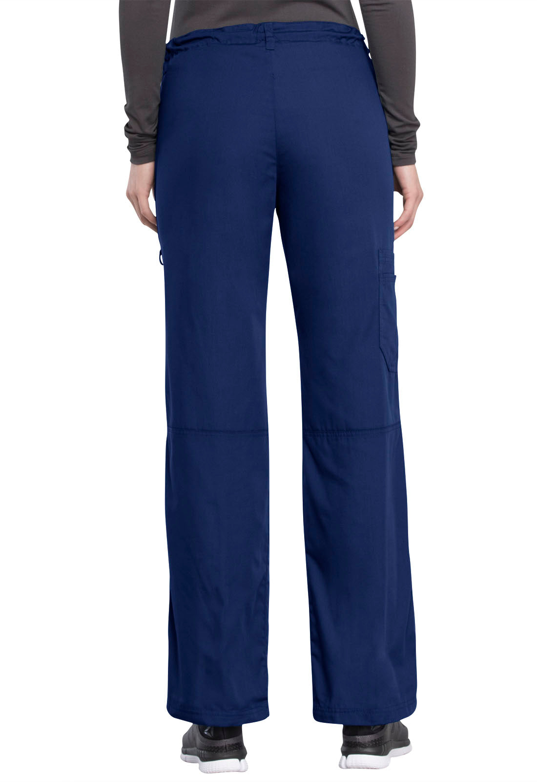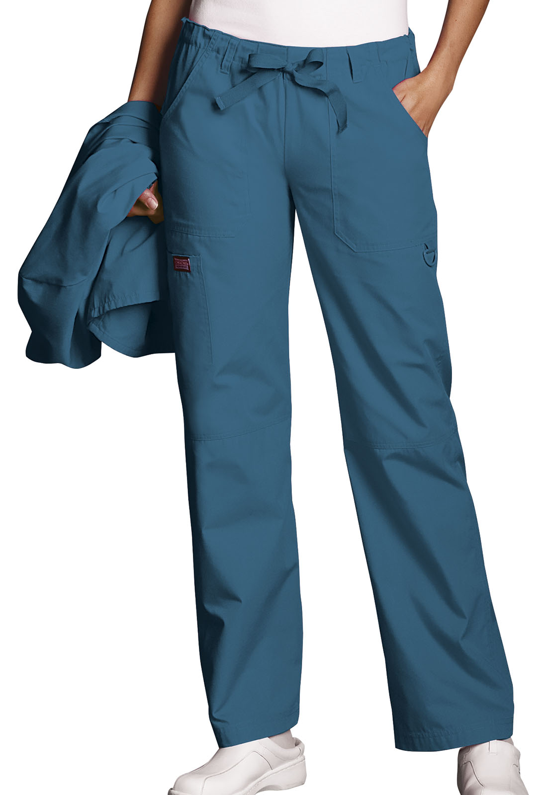 A Modern Classic fit, low rise, straight leg, drawstring pant with an elastic waist features, two front pockets, a D-ring on the left pocket, one cargo pocket with one scissor pocket, leg seaming detail at the knee, five belt loops and double needle top stitching complete this extraordinary pant. Inseam 34"