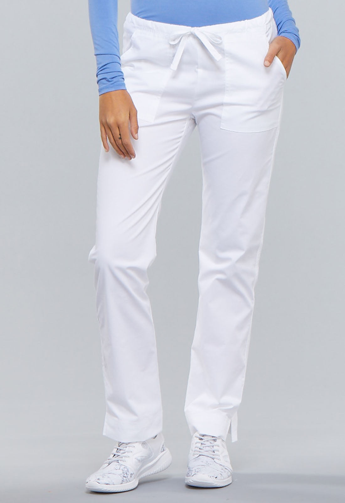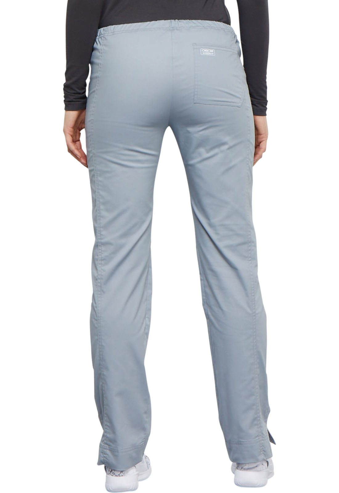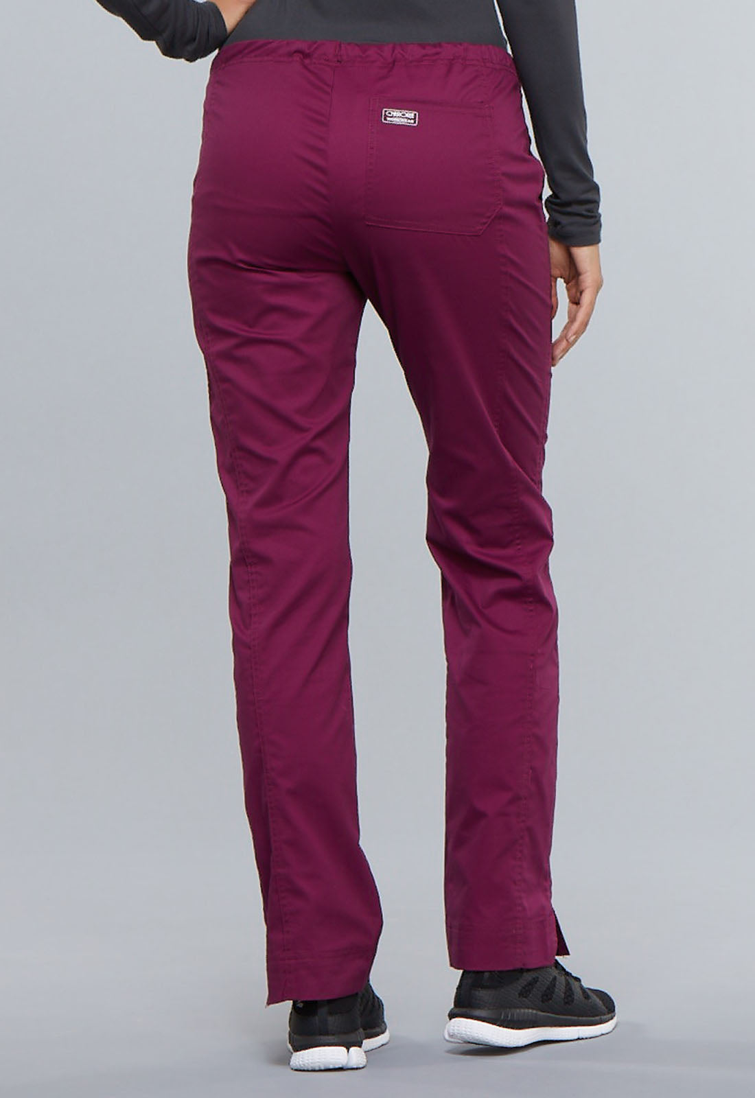 A Modern Classic fit, mid rise,straight legpant with an adjustable drawstring sports an elastic waist and features front patch pockets, a back patch pocket, back leg seams and side vents. Inseam: 31"