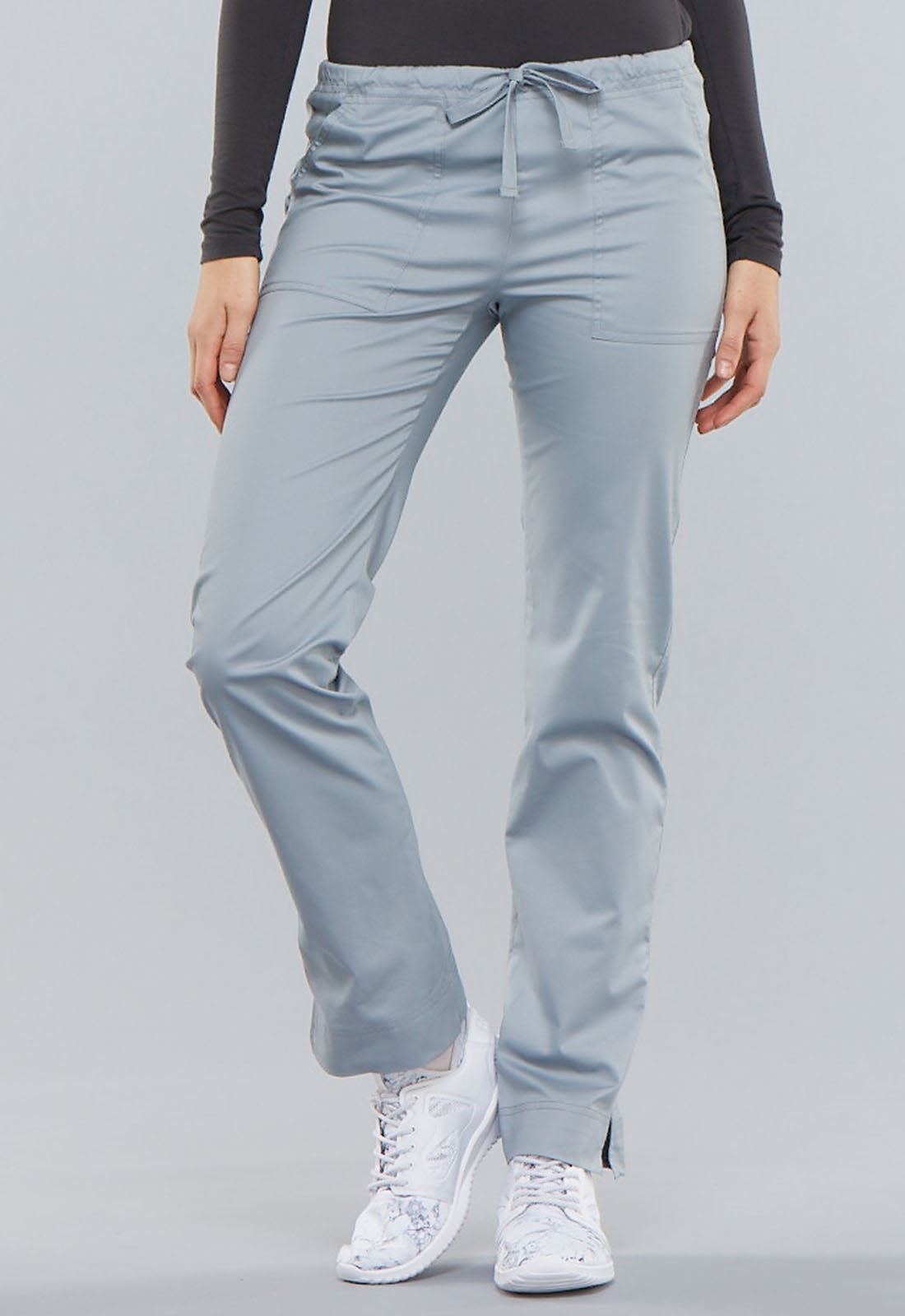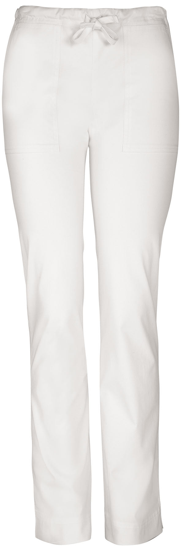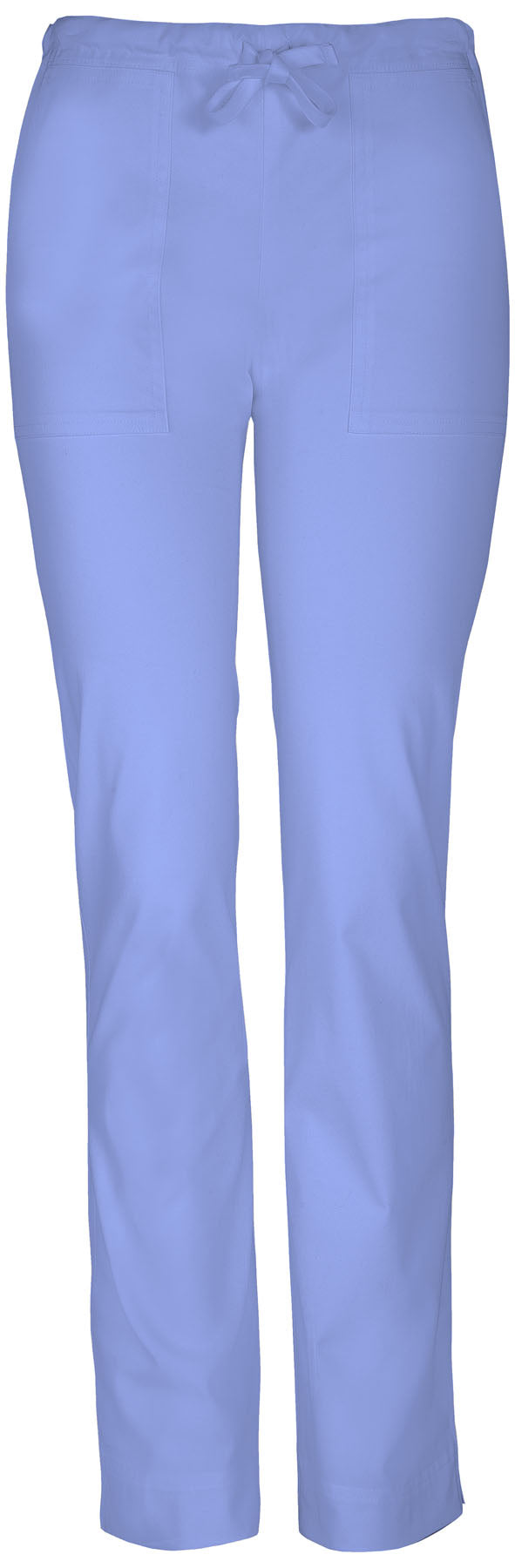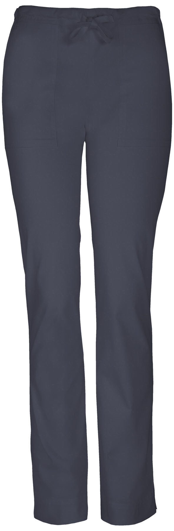 A Modern Classic fit, mid rise,straight legpant with an adjustable drawstring sports an elastic waist and features front patch pockets, a back patch pocket, back leg seams and side vents. Inseam: 28 1/2"