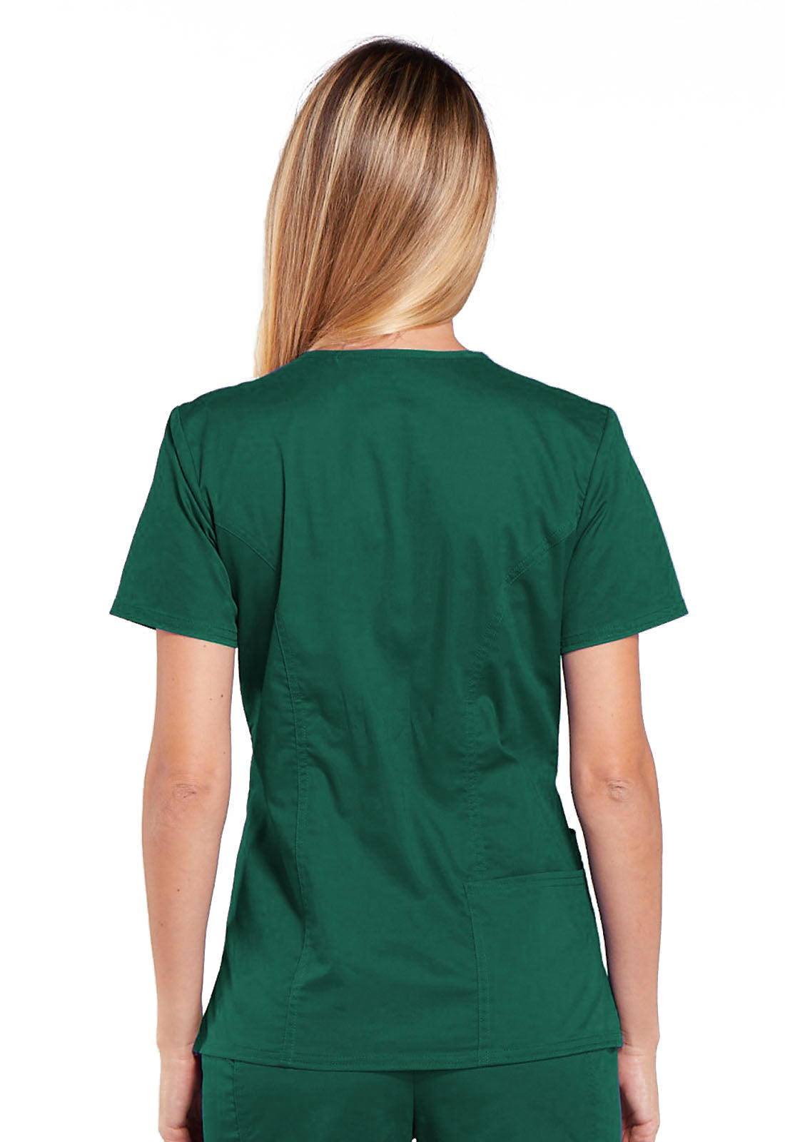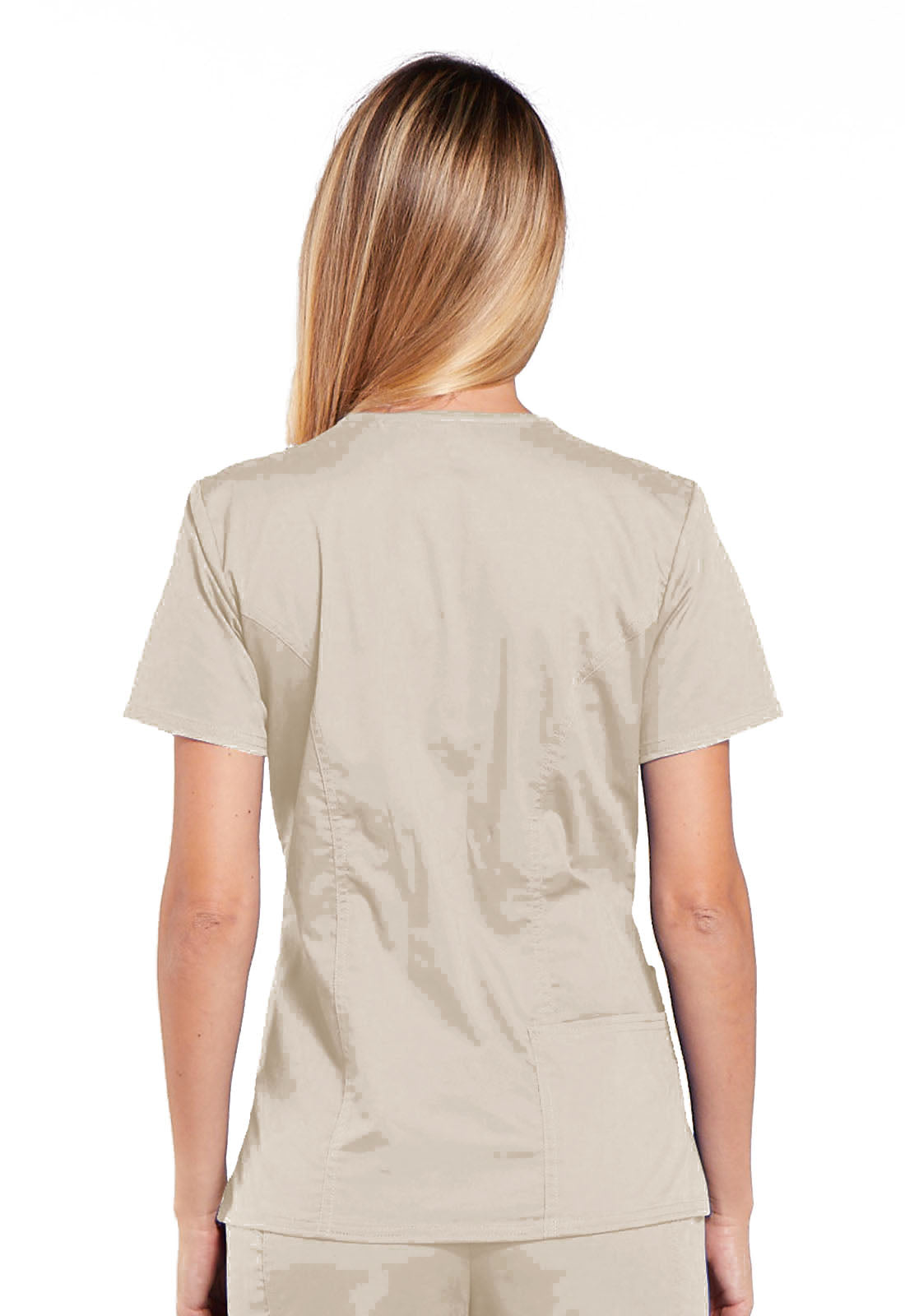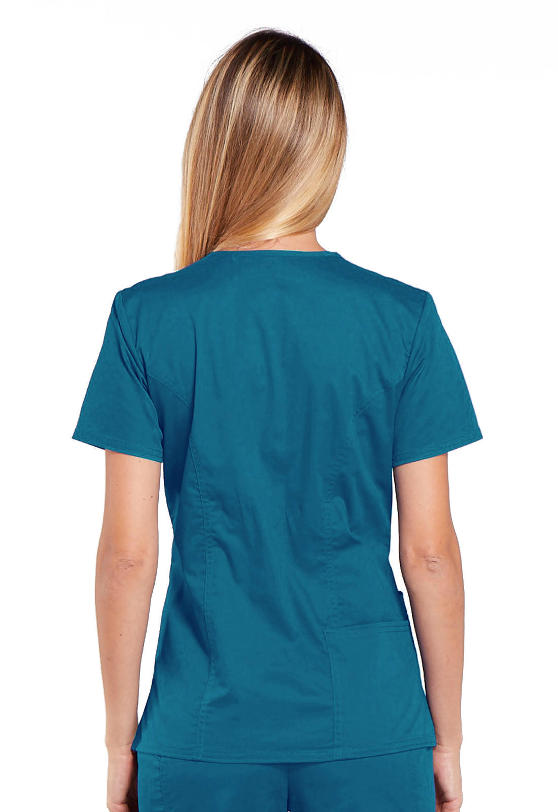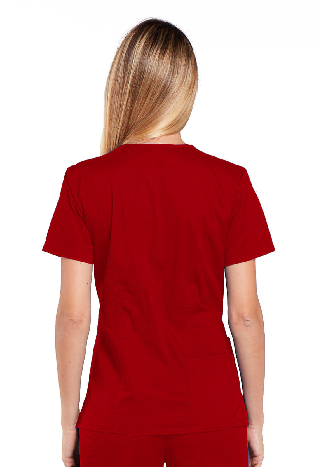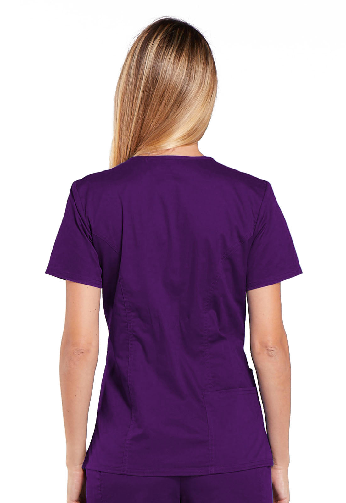 A Modern Classic fit V-neck top features front shoulder yokes with an I.D. badge slot, a stethoscope loop, patch pockets, an interior pocket, a pen slot and a back pocket. Also featured are front and back princess seams, side vents and double needle topstitching. Center back length: 26"