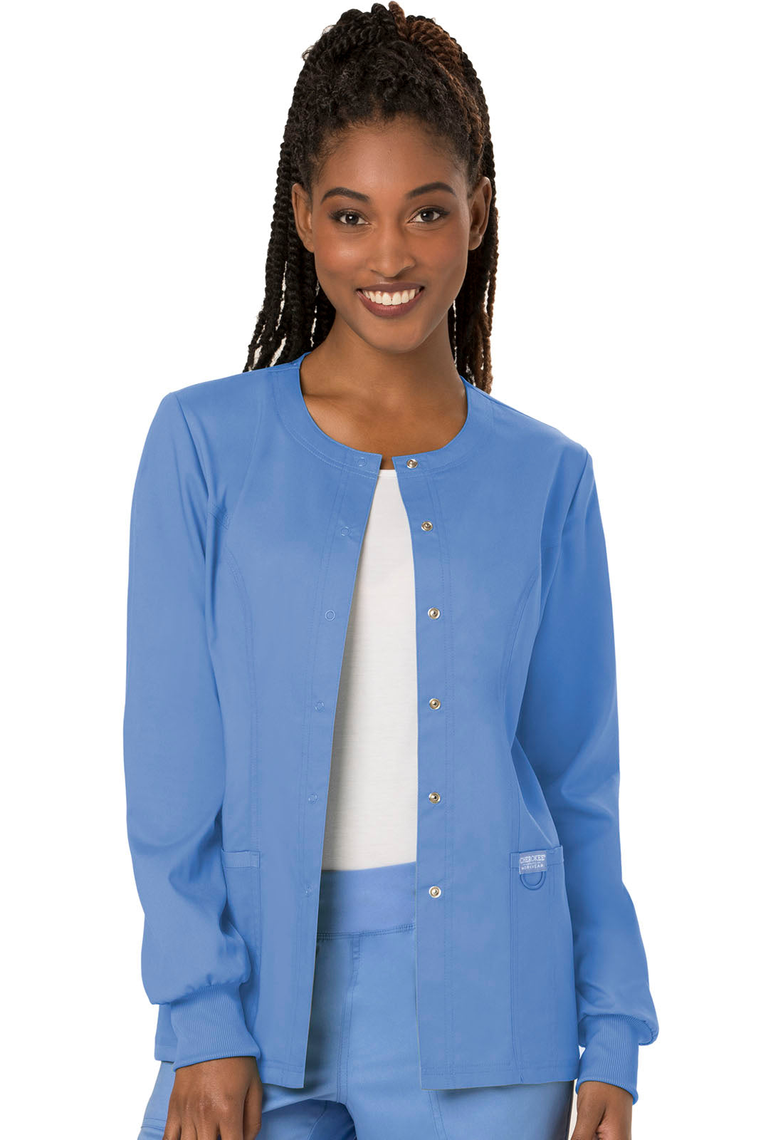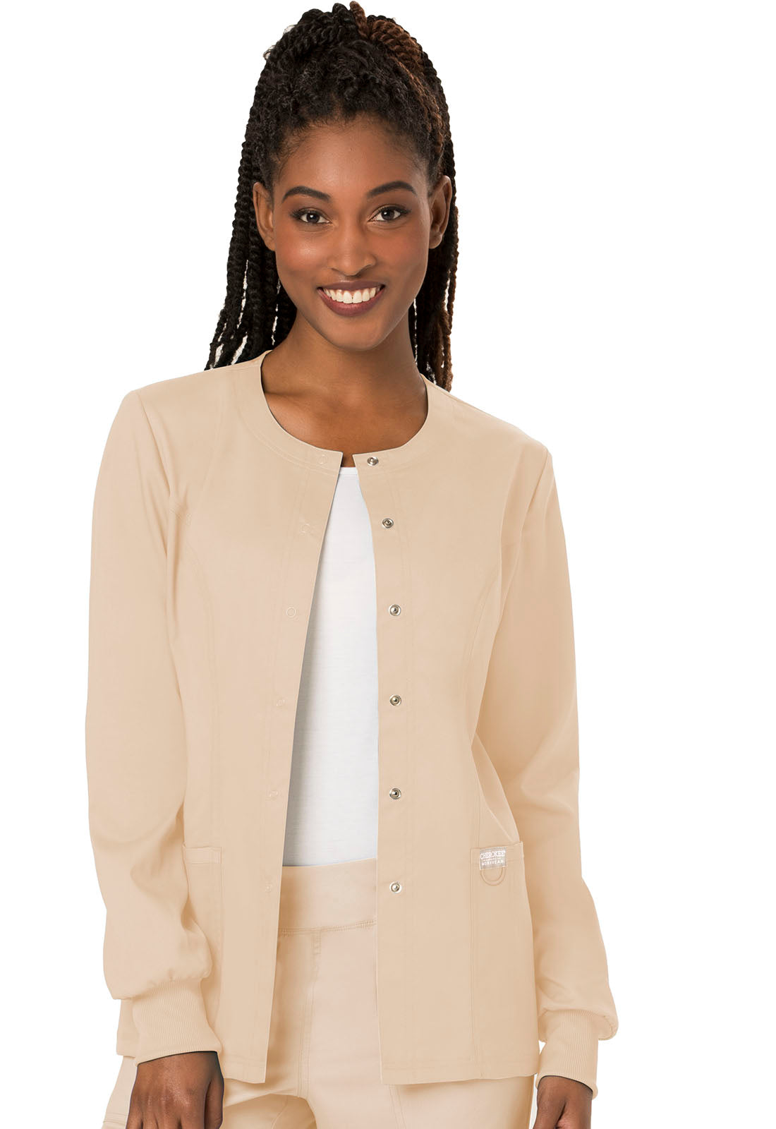 A Modern Classic fit, snap front jacket features two patch pockets (the right with an interior pocket, the left with a hidden instrument loop), a logo label with bungee loop, front and back princess seams, a back yoke, side vents and rib-knit cuffs. Center back length: 27 1/2