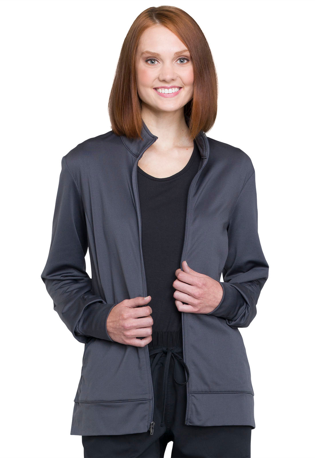 Our zip front knit jacket is an easy and comfortable layering piece, featuring a relaxed fit, a stand-up collar, an oversized kangaroo pocket and a hidden zipper pocket for storage. Unisex fit. Center back length: 27"