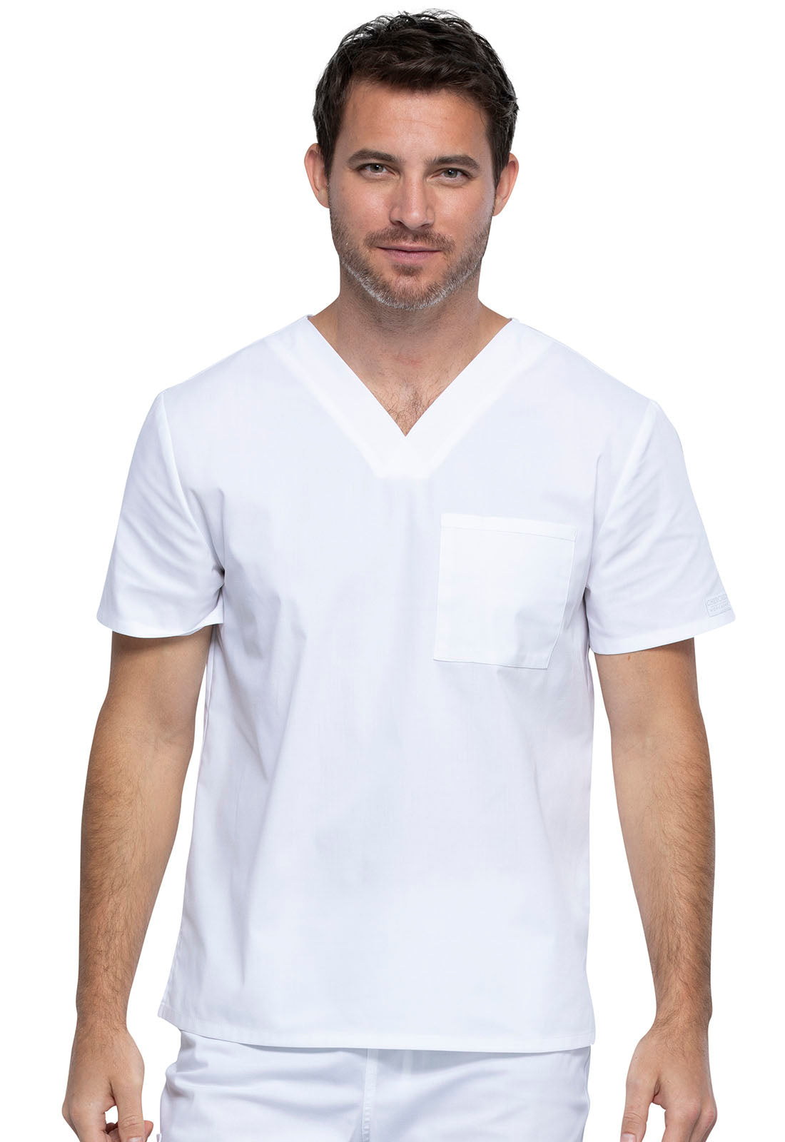 This Unisex top features a chest pocket with a pen stitch, a back yoke and side vents for ease of movement. Unisex Fit. Center Back: 28"